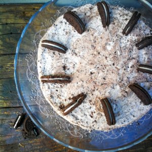 Végül a habot készítsd el, ugyan ezzel a módszerrel. Tegyél egyszerre mindent a darálóba, majd dolgozd össze, és öntsd rá a CAKERre. Nem baj hogy folyós az állaga, ezt is tedd a mélyhűtőbe egy órára dermedni.