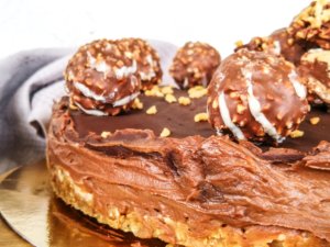 Kend meg vele a tortát, hűtsd még egy órát a hűtőben, majd díszítsd eredi gyümölcsökkel, és csokoládéval.